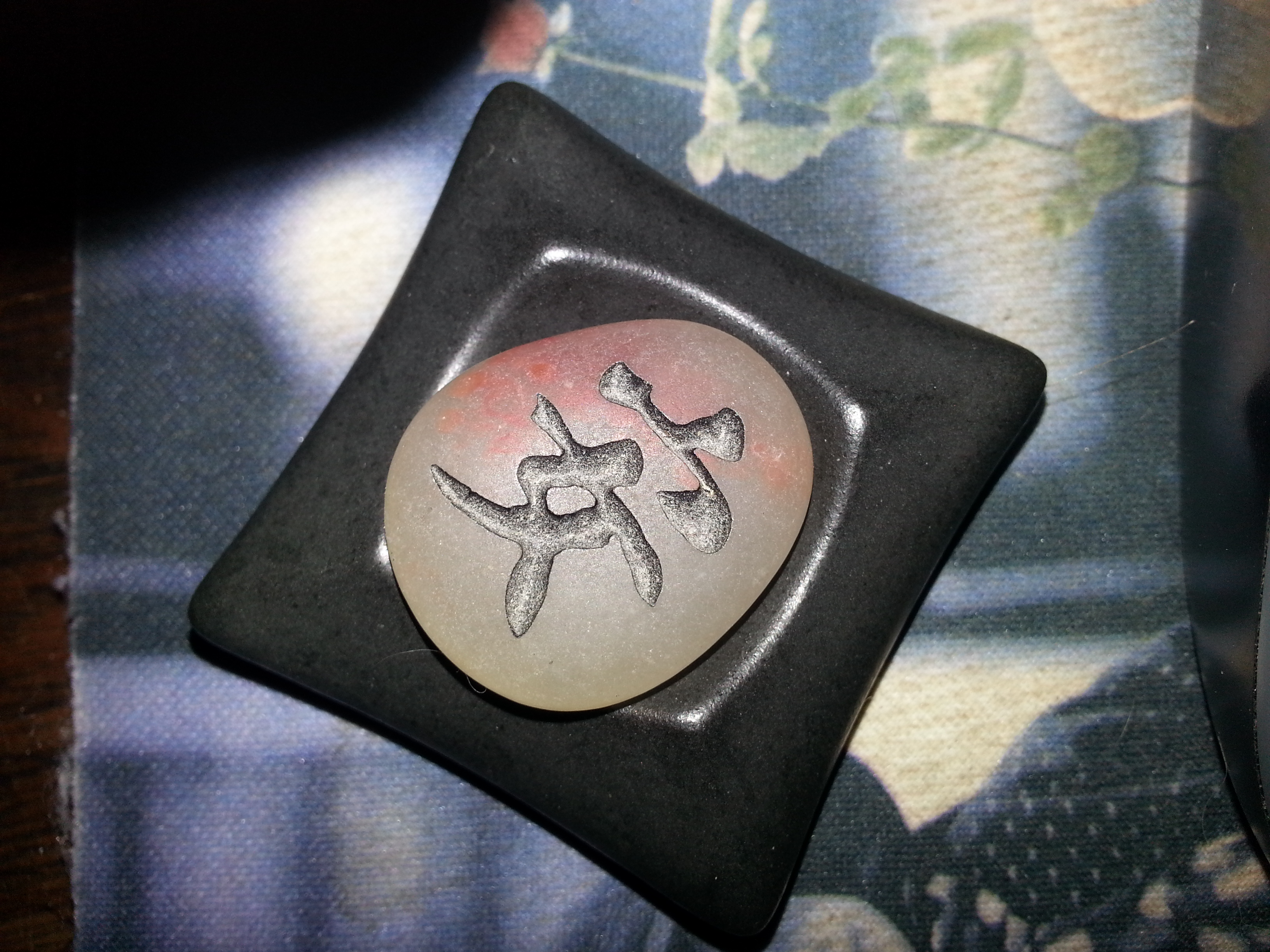 A few years ago, when we traveled to in San Francisco, CA for the Nike Women’s Marathon, my running partner and I purchased stones with Chinese symbols engraved on them. We each chose a symbol that had special meaning for us. We often trade them at the beginning of a race as a symbol of support for each other. We call them our chi.