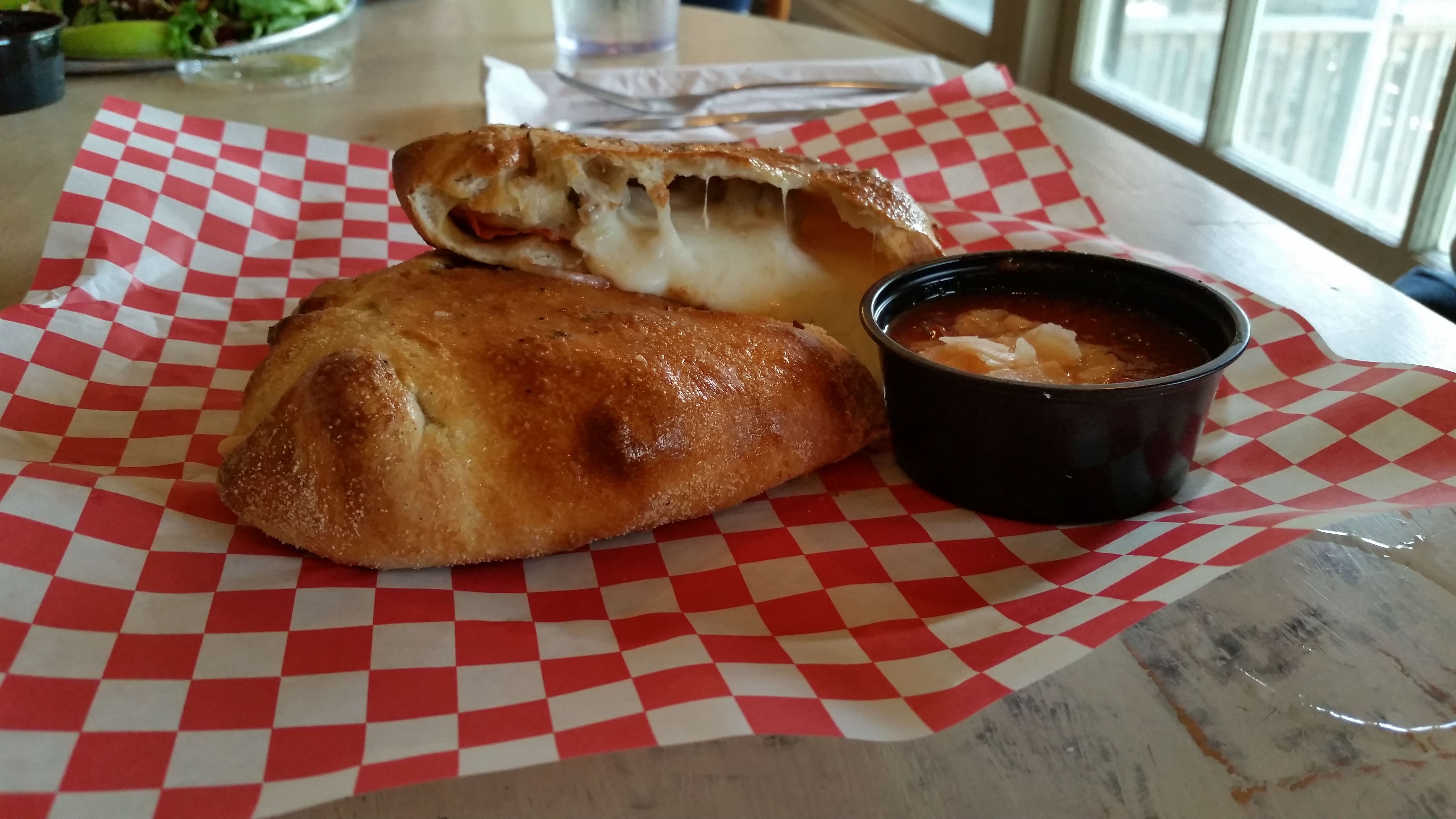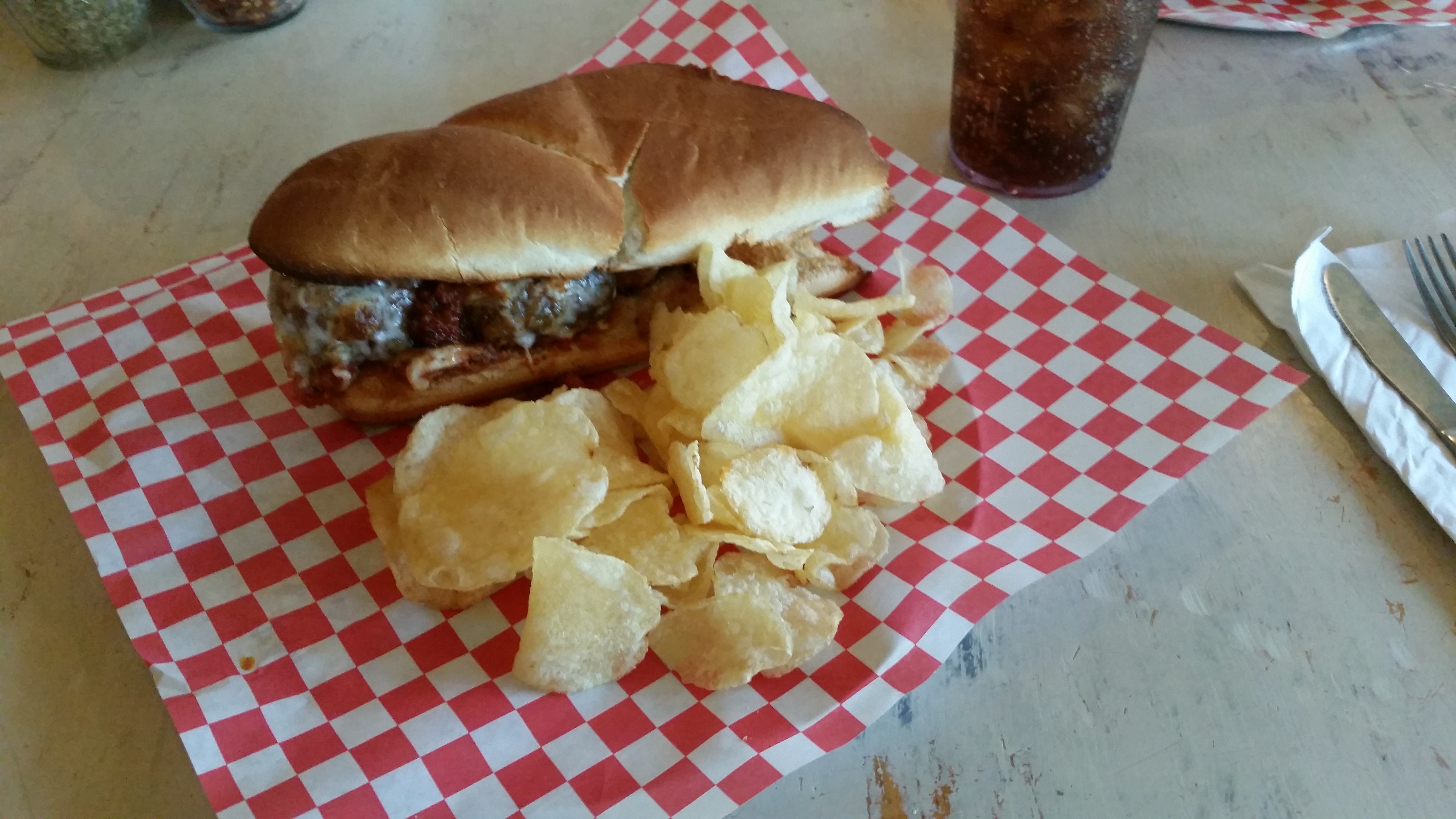 Neighbors is famous for its pizza, but we chose to forgo the usual and try something different. We opted for The City Slicker Salad, a meatball sandwich and a meat calzone. The salad came topped with apples, walnuts and goat cheese and was served with a lemon poppy seed dressing. Delicious! Ron tackled the calzone, stuffed with pepperoni, sausage and cheese.Rich had the meatball sandwich which speaks for itself. It’s meatballs after all! It was a wonderfully relaxing and delicious meal.